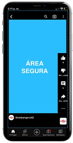 Los videos de YouTube Shorts tienen más iconos de interacción en el lado derecho de la pantalla. Sin embargo, te recomendamos evitar la parte superior e inferior, ya que se superpondrán con datos en tu video. Los iconos de interacción también ocupan una parte considerable de la pantalla.
